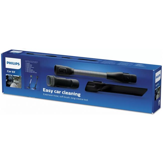 Pełen zestaw akcesoriów z dodatkowym elastycznym wężem, miękką szczotką oraz długą szczelinówką, które ułatwią sprzątanie samochodu. Zgodny z odkurzaczami SpeedPro (Aqua), SpeedPro Max (Aqua), serii 5000 (Aqua), serii 7000, serii 8000 (Aqua / Aqua Plus) oraz bezprzewodowymi odkurzaczami AquaTrio serii 9000.